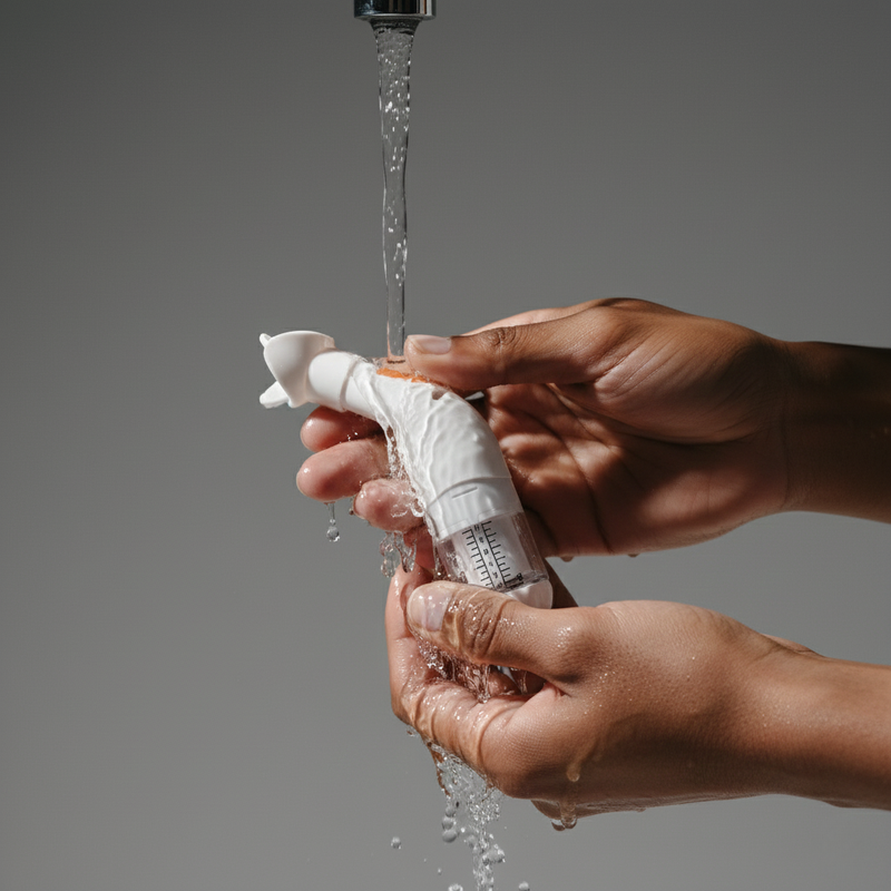 Disassemble the mouthpiece and chamber, rinse with warm soapy water, let air-dry, and store in a clean, dry place.